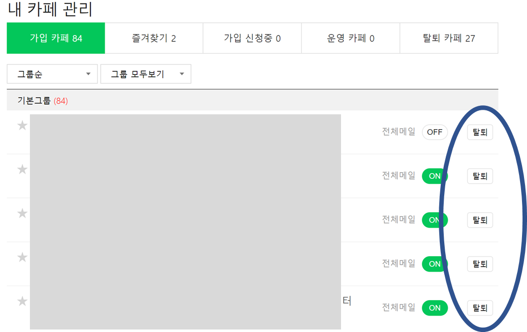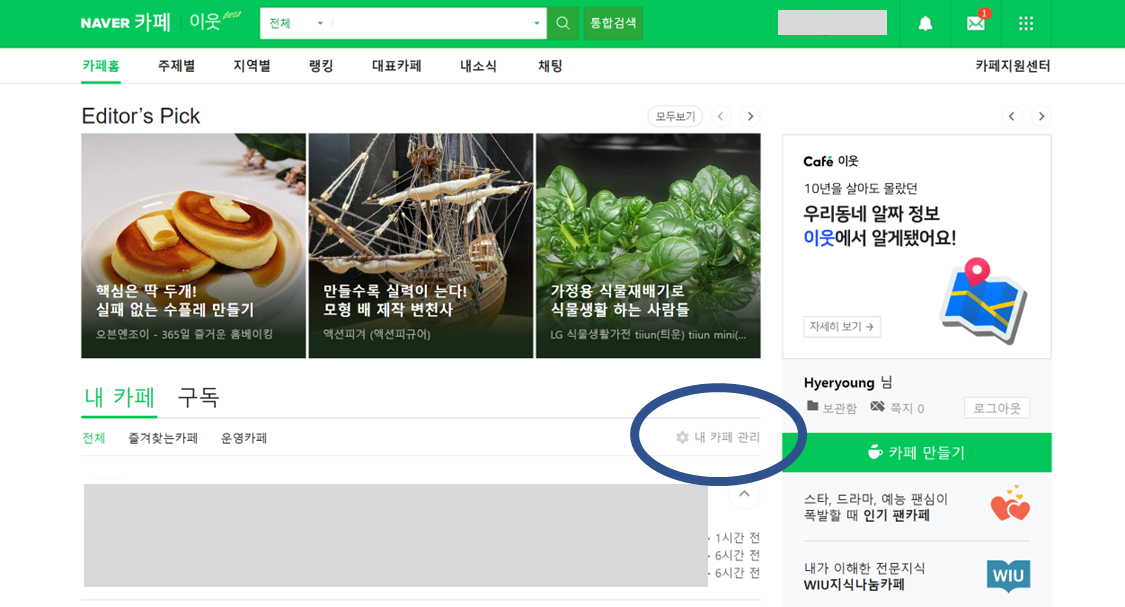 1. 내가 가입한 카페가 다 나오는 페이지로 간다. -> 내카페 관리 클릭