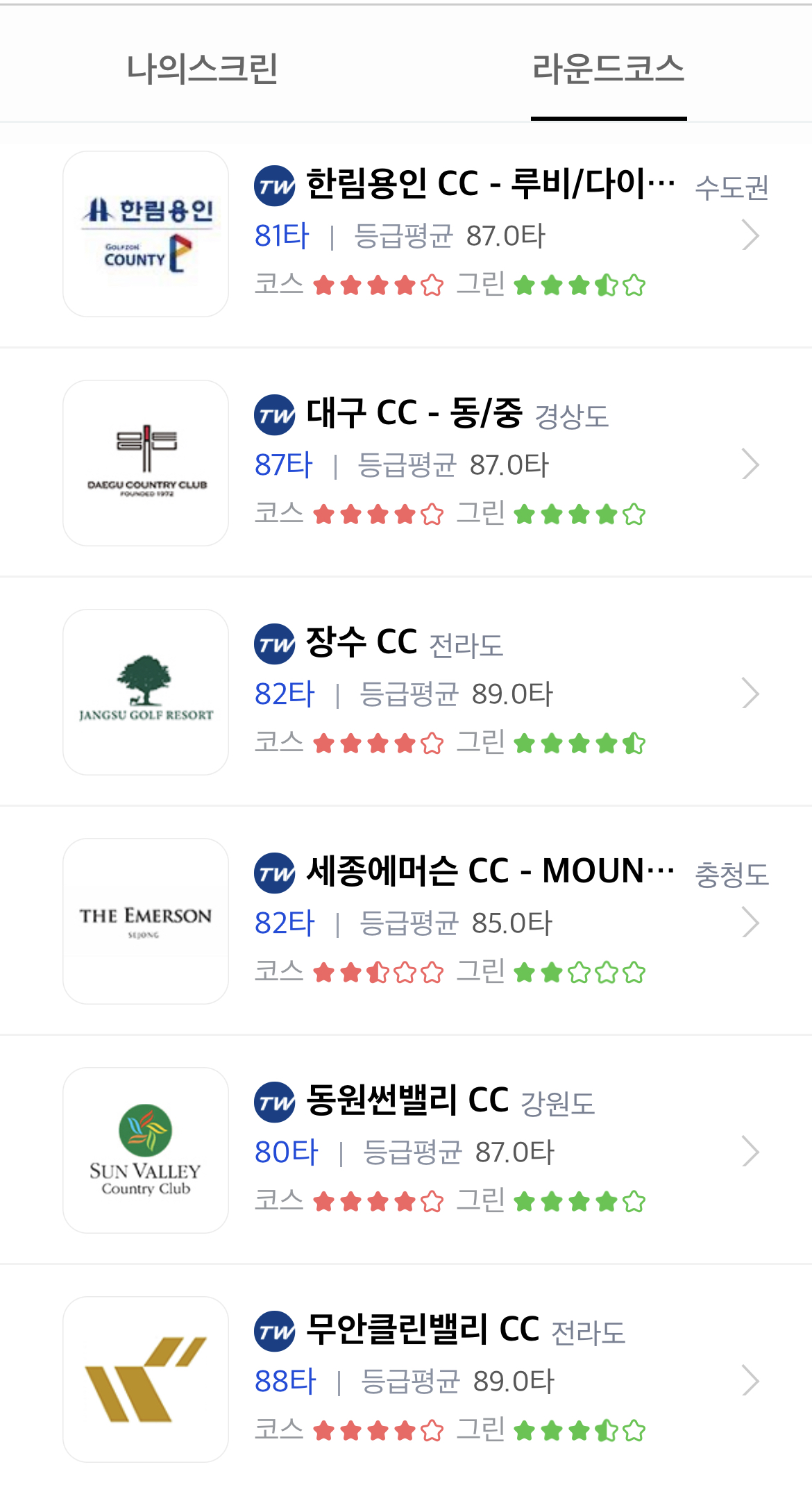 국내 인기코스 - 라운드수