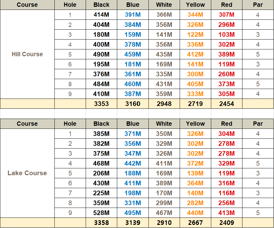 레이크 코스 : 블랙 3,358m, 블루 3,139m, 화이트 2,910m, 레드 2,409m