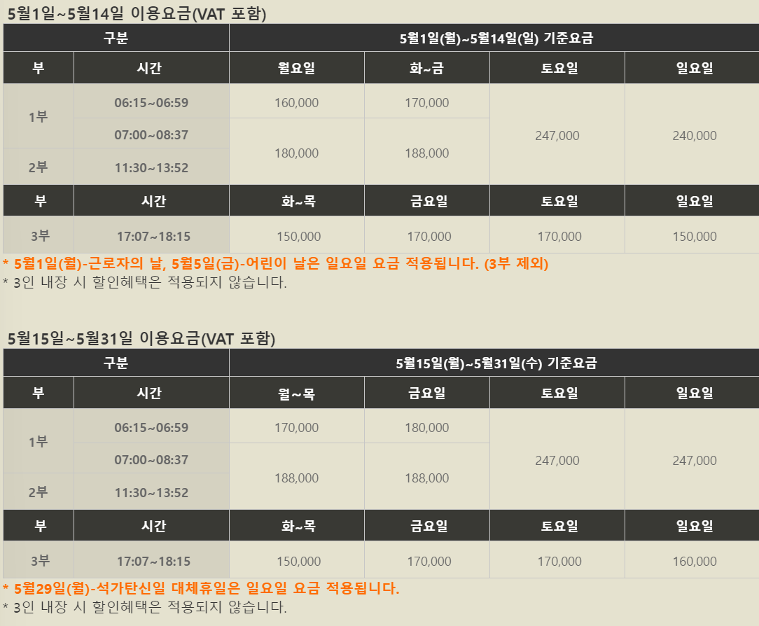 그린피 (3인 내장 시 할인혜택은 적용되지 않습니다.)