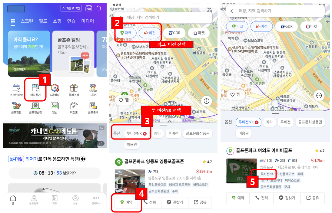 어플을 통한 골프존 NX매장 찾기 및 예약방법