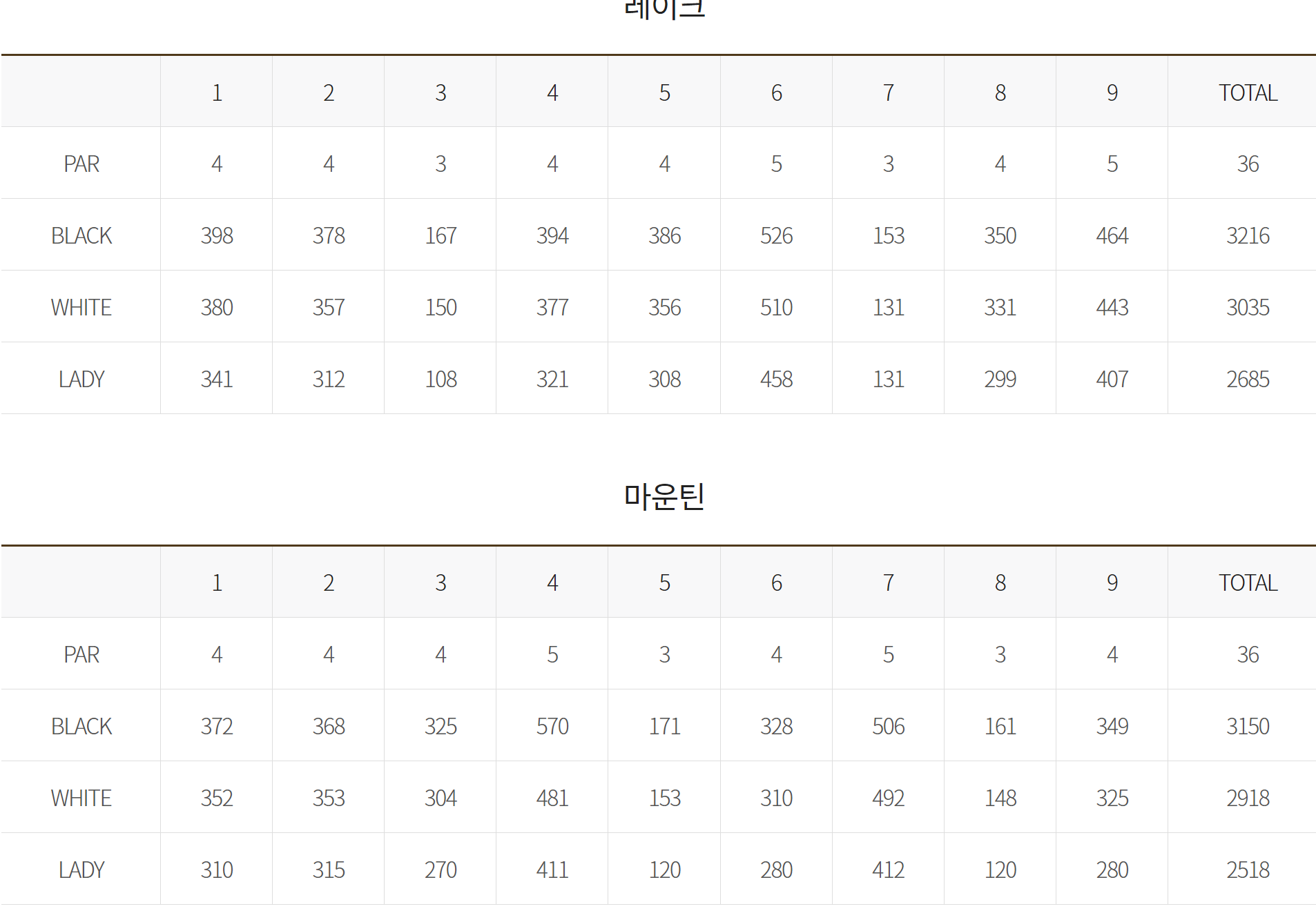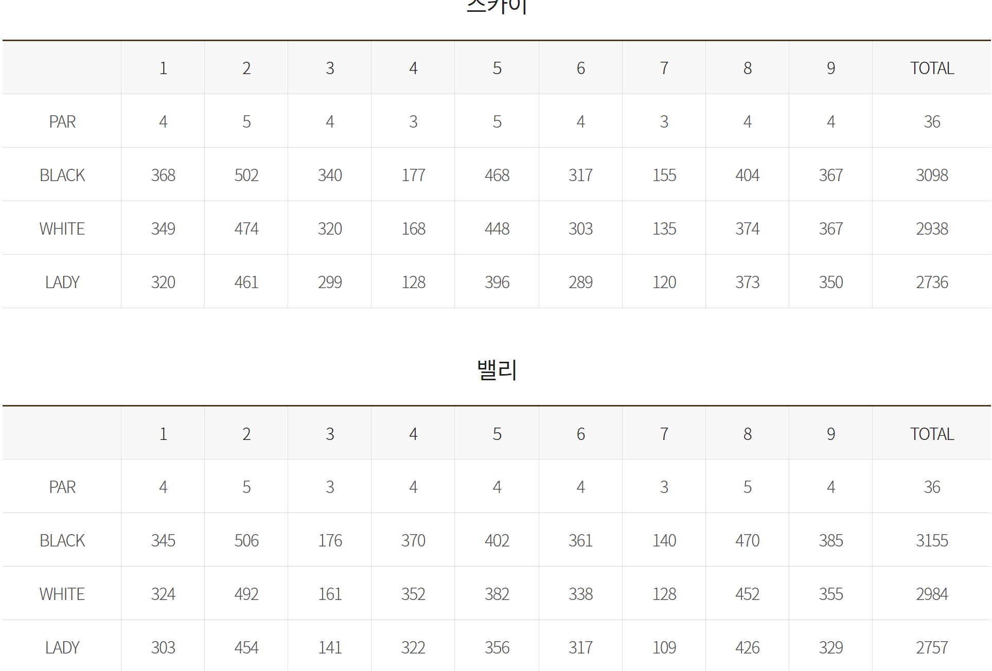 회원제인 스카이, 벨리 / 대중제인 밸리, 레이크, 마운틴 코스로 나누어져 있습니다. 회원제와 대중제로 나누어져 36홀 구성이면 꽤 큰 골프장이죠.