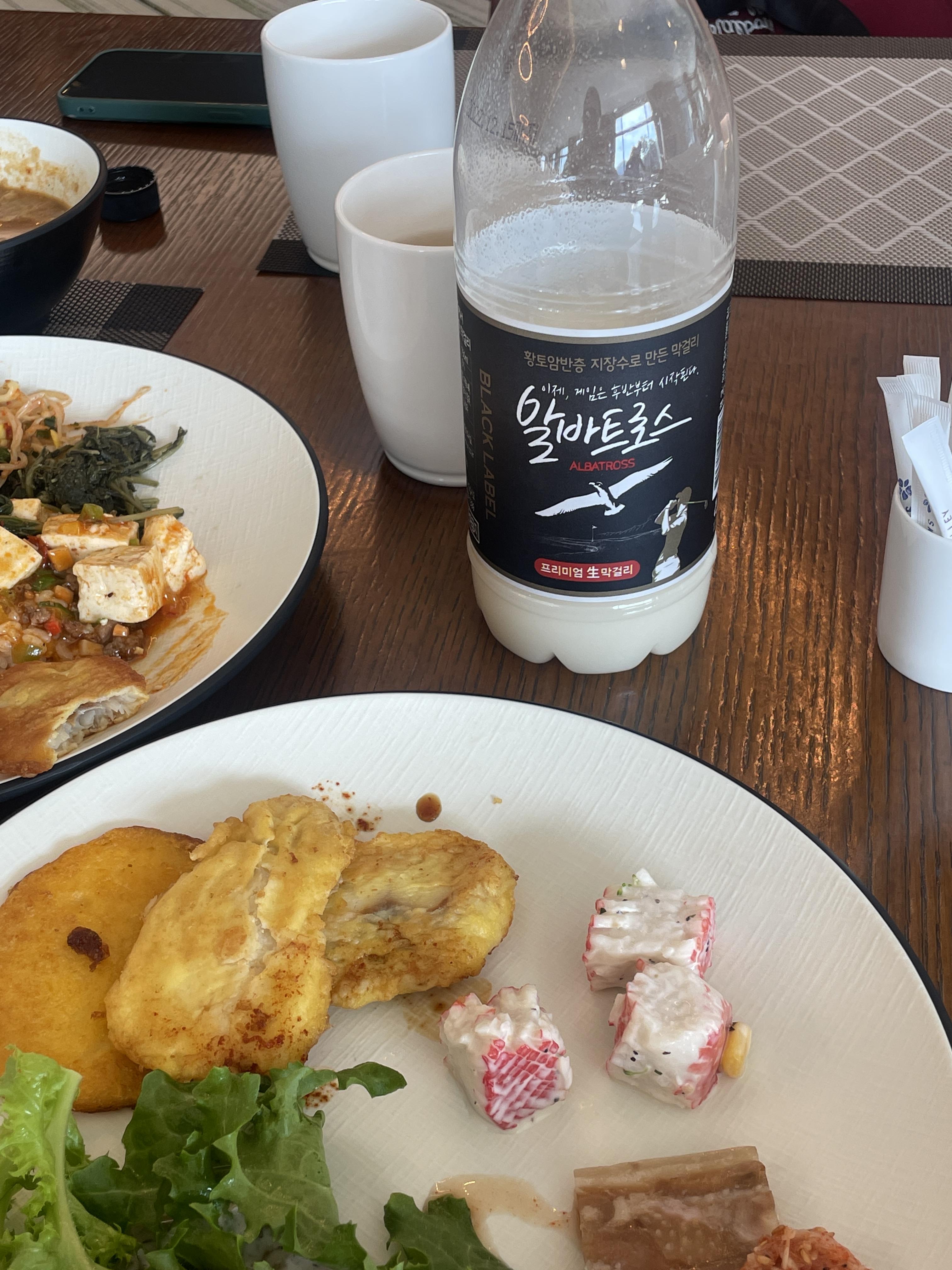조식 맛도 괜찮았고, 음식 종류도 다양해요. 더 먹고 싶었지만 배부르면 샷 하기 힘들어서 조금만 먹었네요. 저희는 조식을 먹으면서 앨버트로스 막걸리를 먹었습니다. 알바트로스 막걸리는 13,000원이에요. 역시 골프장에서 먹는 막걸리는 그 어느 때 마시는 막걸리보다 1.5배는 더 맛있는 것 같습니다. 자, 이제 조식을 먹고 라운드를 하러 나가봅니다. 식사 메뉴를 더 자세히 알고 싶으면 스카이밸리 컨트리클럽 (skyvalley.co.kr)