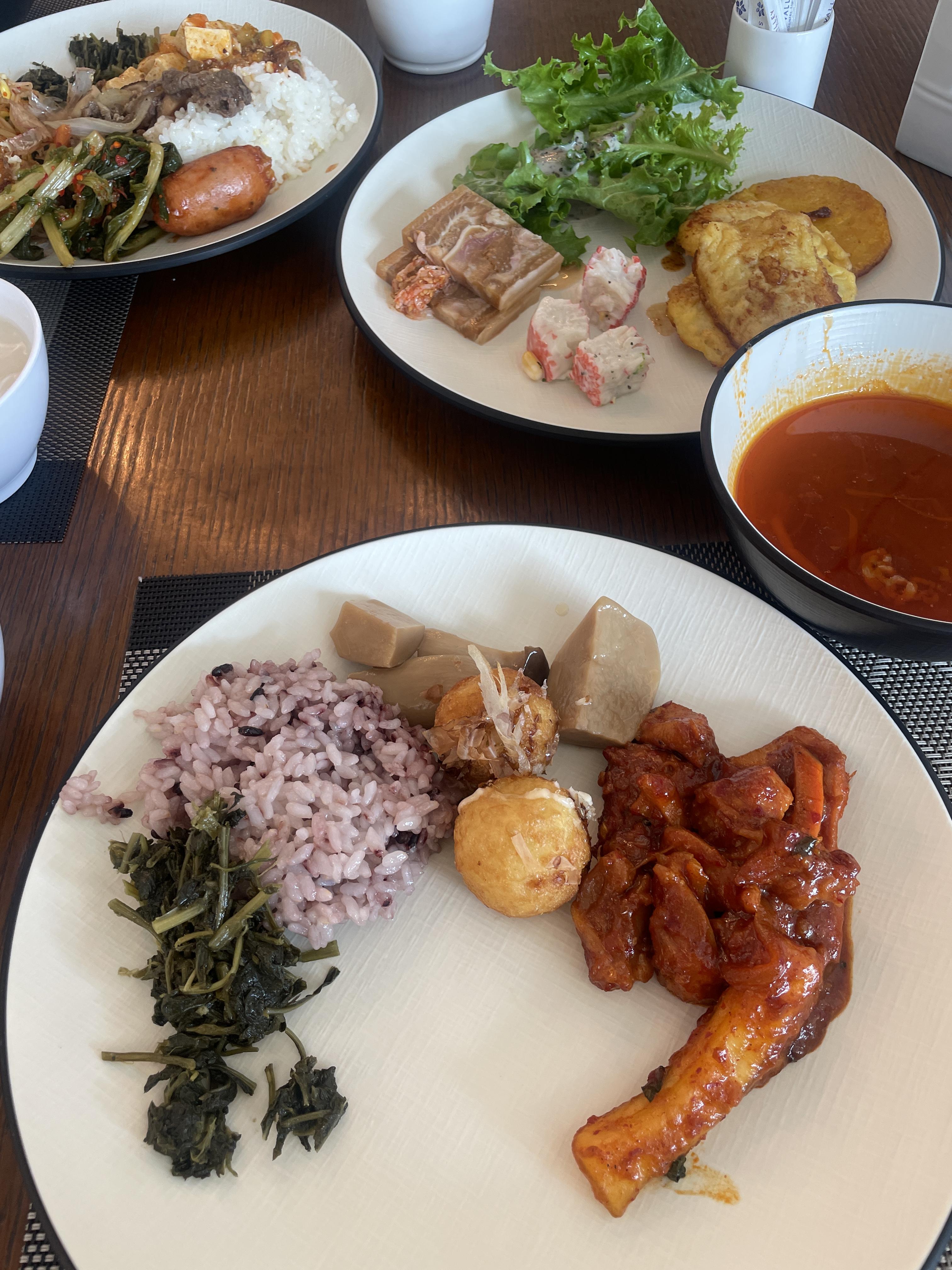 조식 메뉴는 저에게는 아주 훌륭했어요. 조식은 19,000원 05:40분부터 8:30분까지 운영되고, 중식은 21,000원 10:30분부터 13:30분까지입니다. 저는 이렇게 뷔페로 나오는 골프장이라면 조금 일찍 가서 여유롭게 뷔페를 즐기고 소화도 시킬 것 같아요.