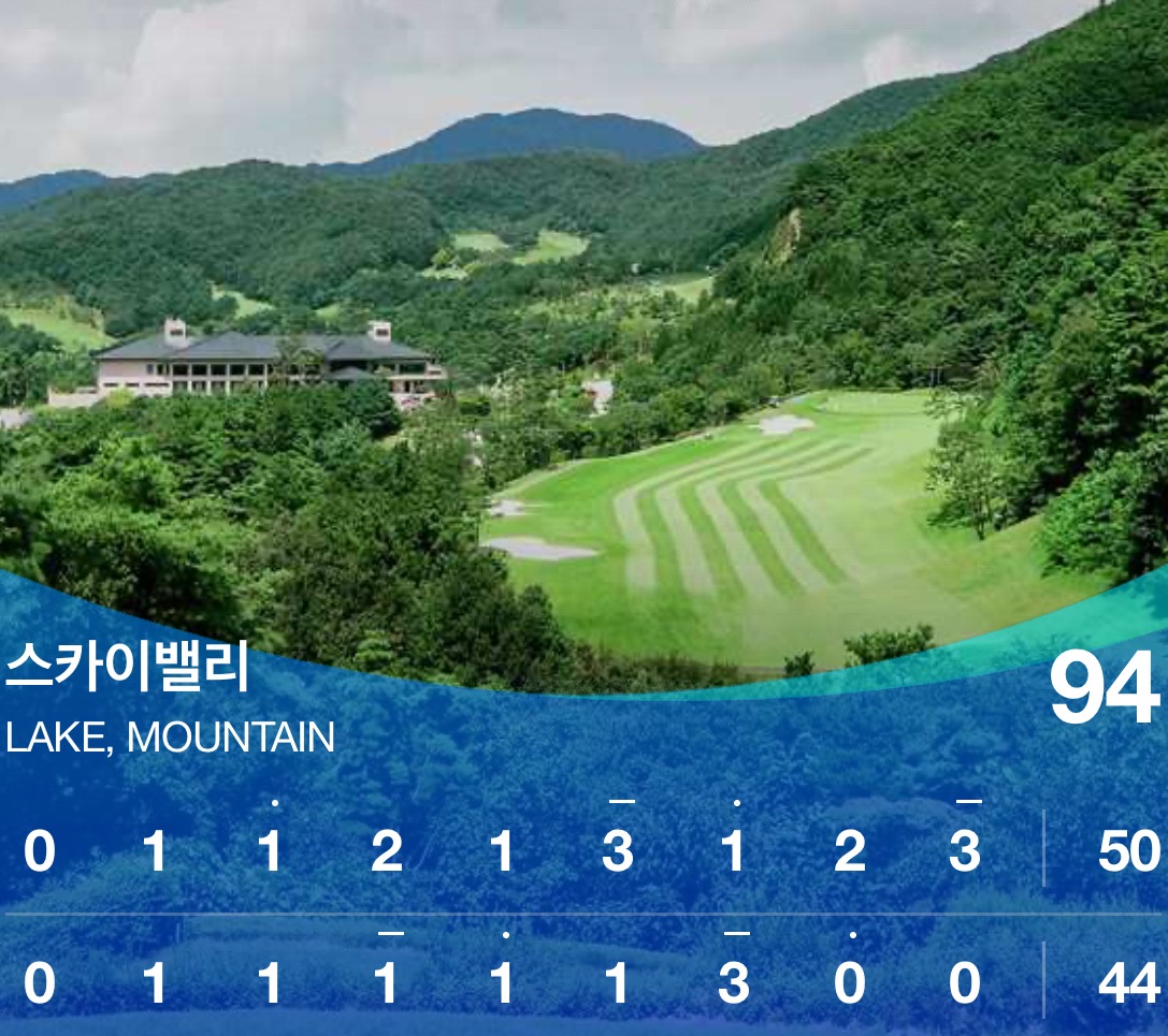 이때 파의 총 합이 48이 되도록 파 4홀 x 8개=32, 파 3홀 x2개=6, 5홀 x2개=10으로 12개 홀을 선정합니다.