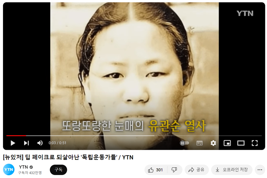 유관순 열사 딥페이크 보러가기