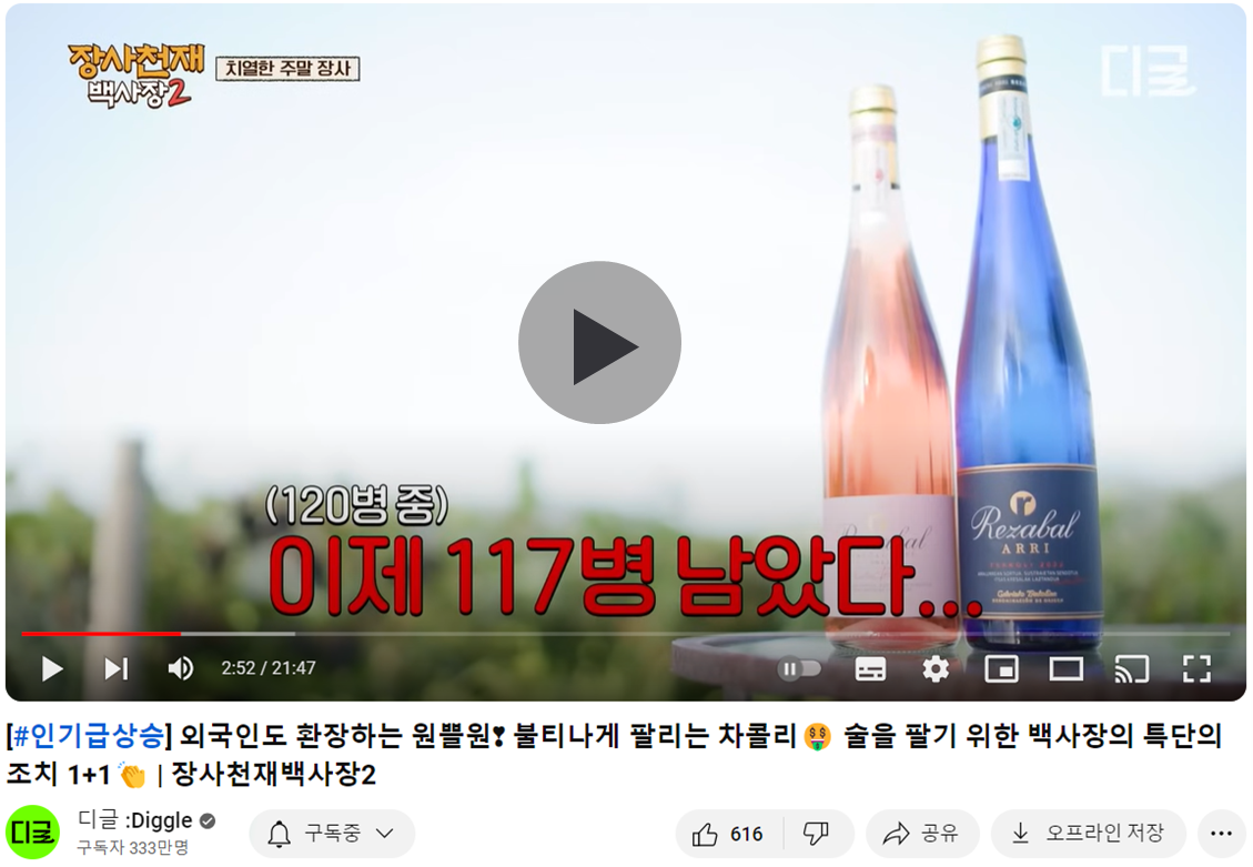 tvN 3회차에서 했던 장사천재 백사장에서 백종원이 새로운 지략들을 쏟아내면서, 판매량이 저조했던 차콜리(스페인 바스크 지방 대표적 화이트와인)을 팔기위해 특별 주류 판매법을 도입했었던 장면이 나오기도 합니다.
