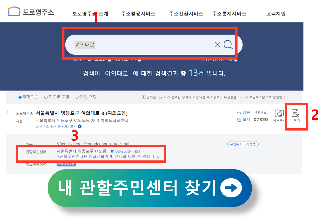 도로명주소를 통해 나의 관할주민센터를 찾을 수 있습니다.