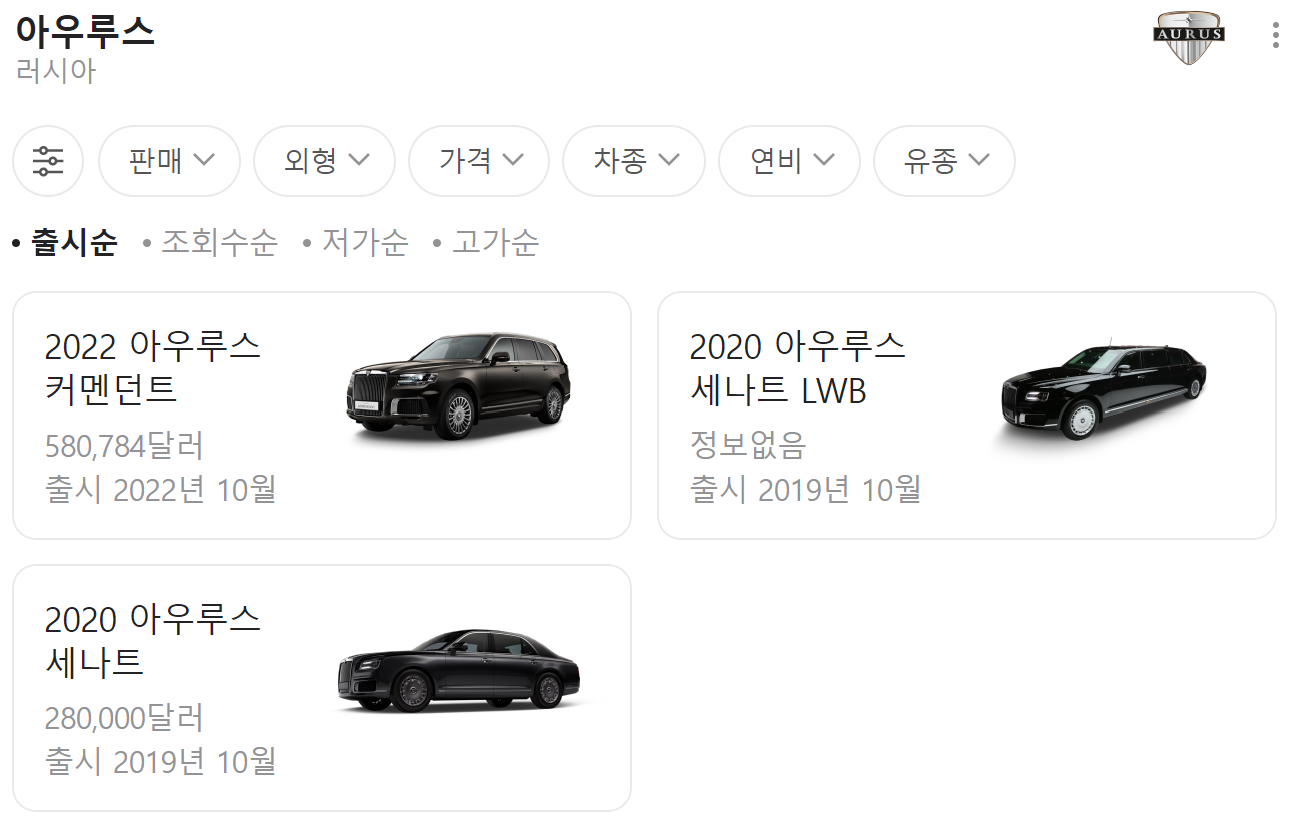 ‘러시아판 롤스로이스’로 불리는 아우루스는 러시아 최초 고급 자동차 브랜드로 외국 정상의 의전용 차량 등으로 쓰입니다. 아우루스의 명성은 그 정교한 디자인과 뛰어난 성능에 기인합니다.