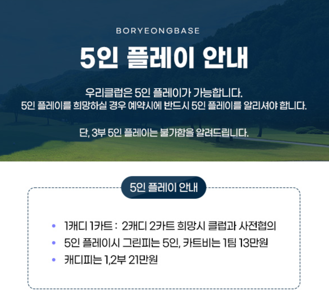 4인기준 카드캐디피 (5인은 별도)