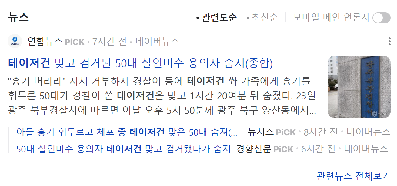최근 테이저건을 맞고 숨졌다는 안타까운 기사를 접하게되었습니다. 테이저건에 대해 자세히 알아볼까요?