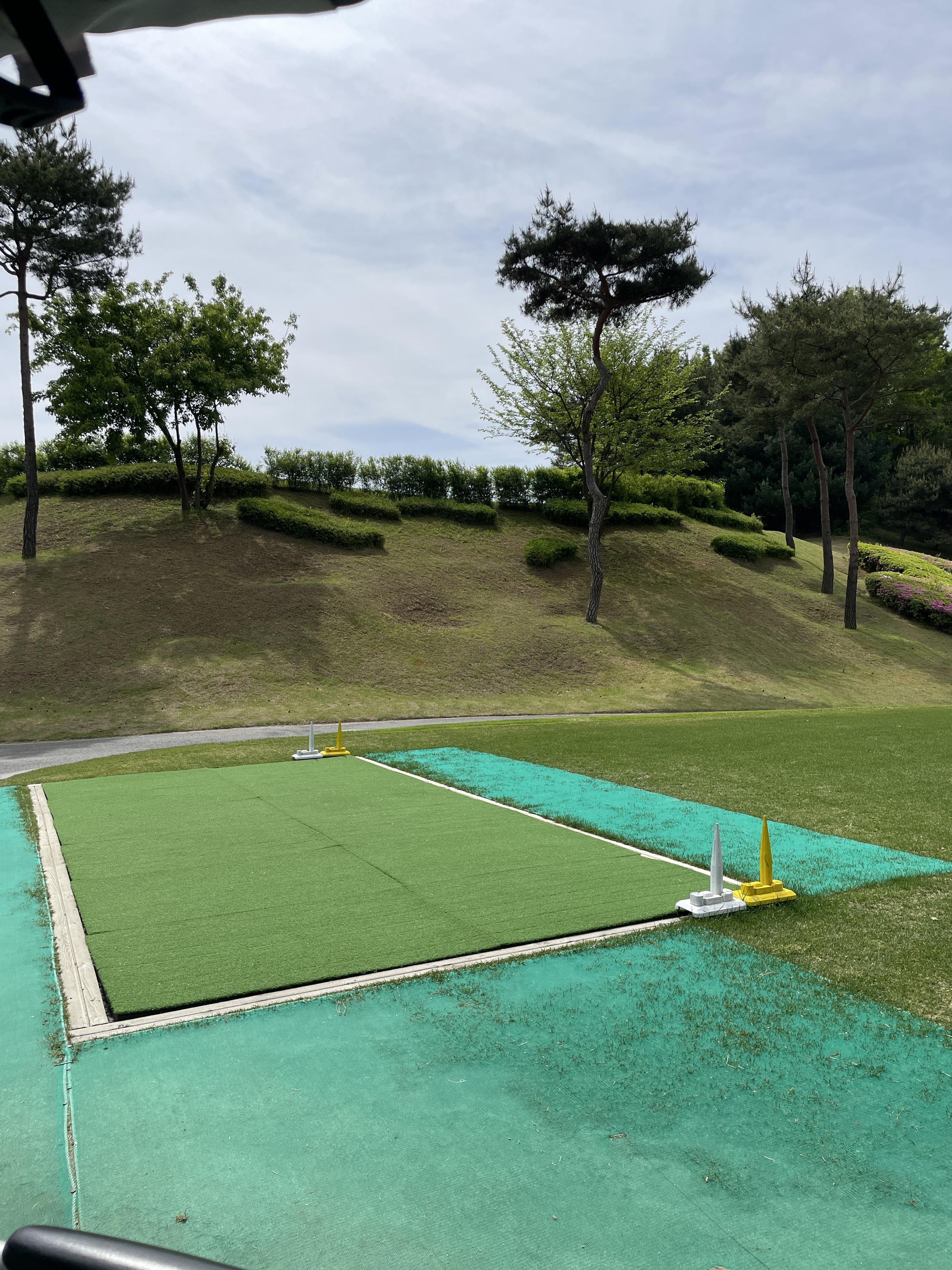대부분 잔디에서 티샷을 했지만, 매트 티샷도 있어요!
