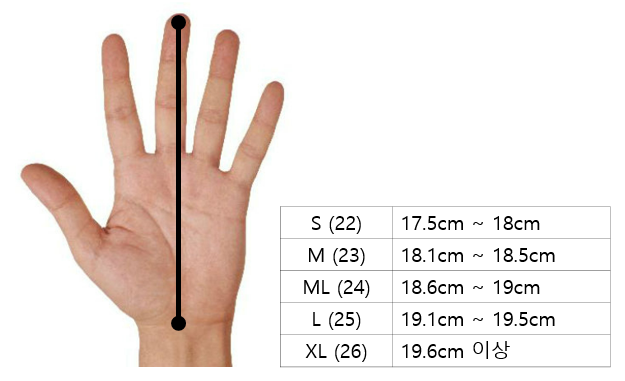 *손바닥을 편 상태에서 손목 시작점부터 중지 끝까지 잰 길이