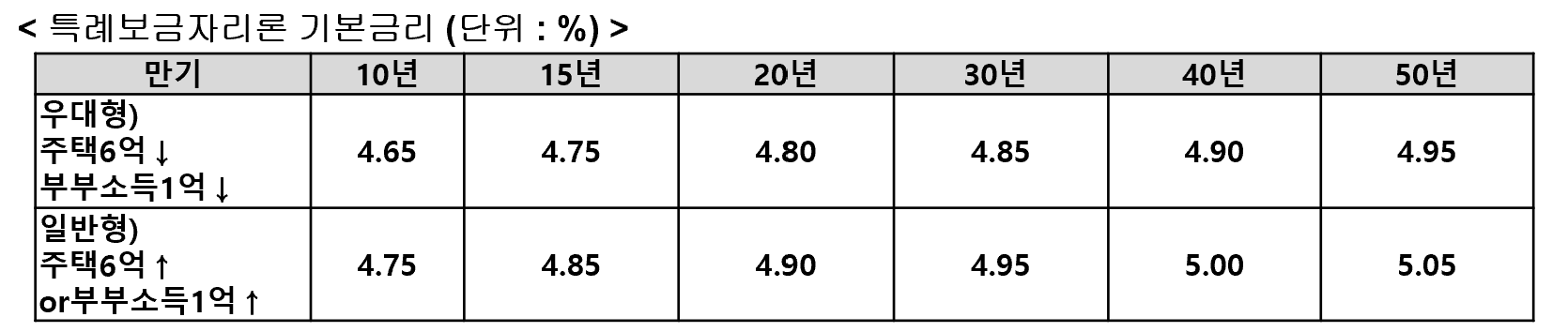 기존에 연 소득 7000만원으로 제한이 소득 상한이 풀린 것입니다. 즉 연봉 1억 원 이상이든 2억 원 이상의 연봉을 받더라도 소득 제한이 없기 때문에 특례보금자리론을 신청할 수 있습니다.
