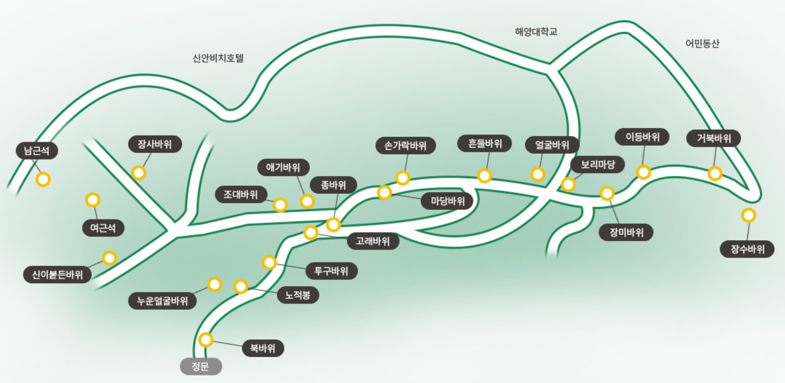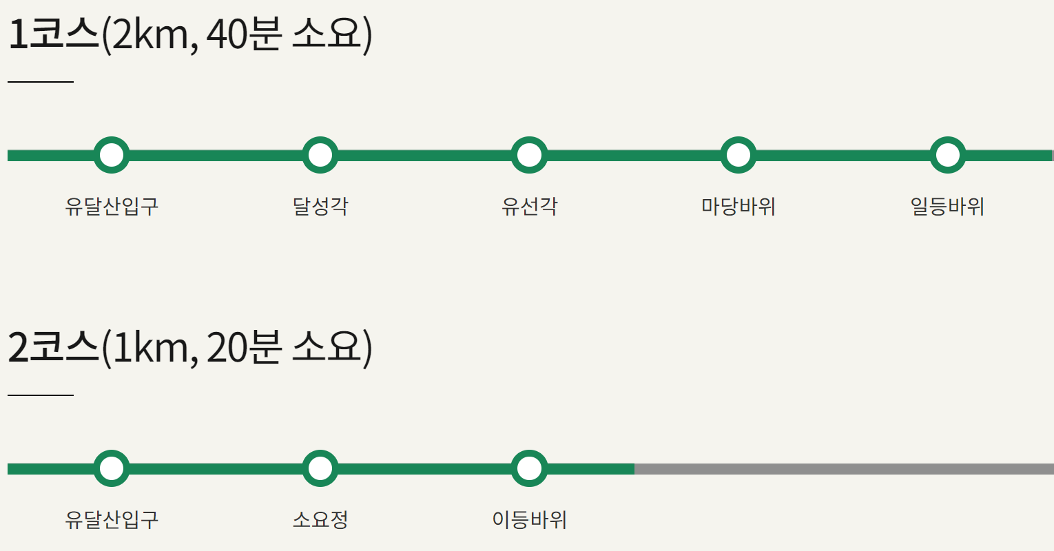 - 2코스: 1코스보다 다소 험한 구간이 있을 수 있으며, 경치가 더욱 다양합니다. 이 코스는 좀 더 자연을 느낄 수 있는 경로로, 등산을 즐기는 사람들에게 인기가 있습니다.