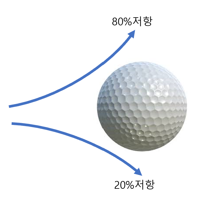 공이 공기 저항을 맞고 80%는 공의 위쪽으로, 20%는 공기 아래쪽에 저항을 받고 회전량(rpm)을 정합니다. 회전량이 적당할 경우 직구로 공이 나가지만, 회전량이 많을 경우 볼이 안쪽으로 회전하면서 나갈 것이고(백스핀 O), 회전량이 없는 볼은 볼이 나가다가 아래로 그냥 떨어지는 공이 됩니다.