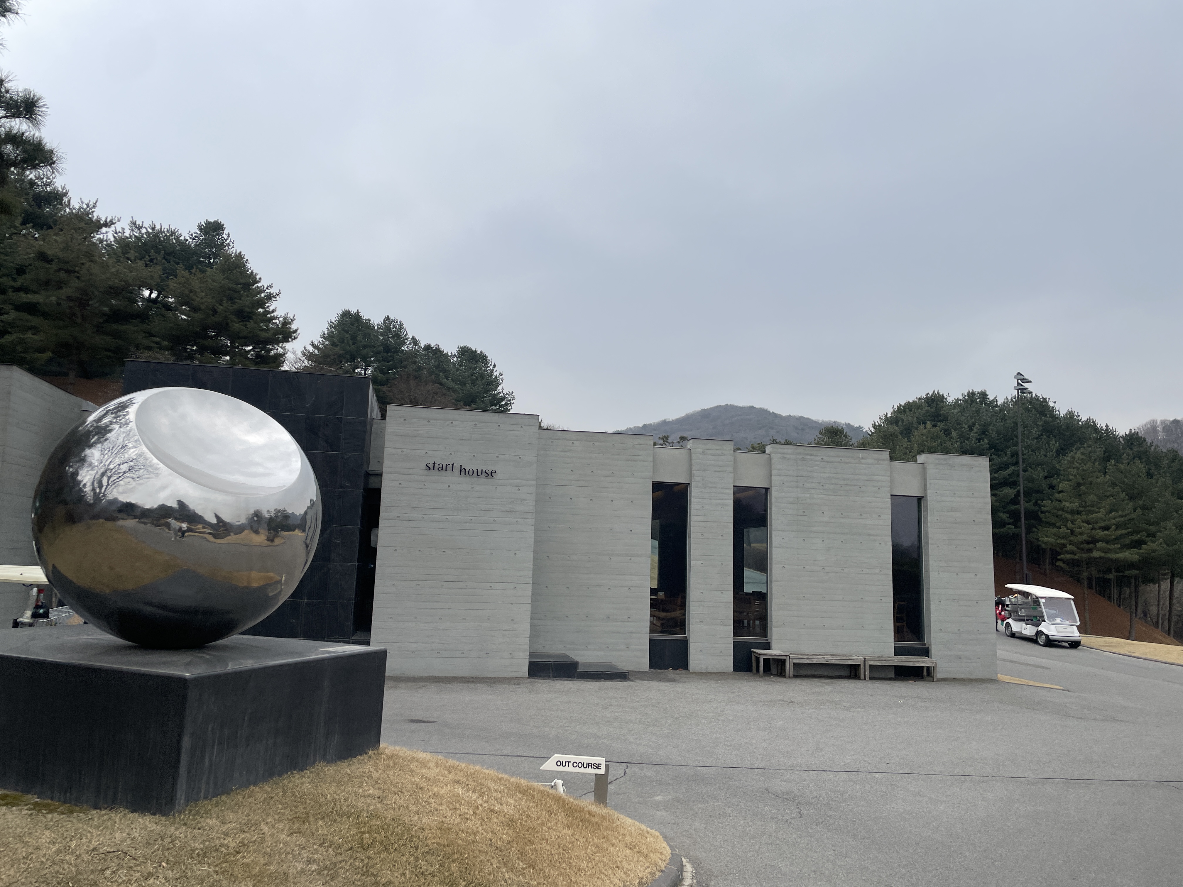 클럽하우스 내부인데 조형물 같은 것은 없었지만 깔끔하고, 구장을 바라보는 방향으로 탁 트여있습니다.