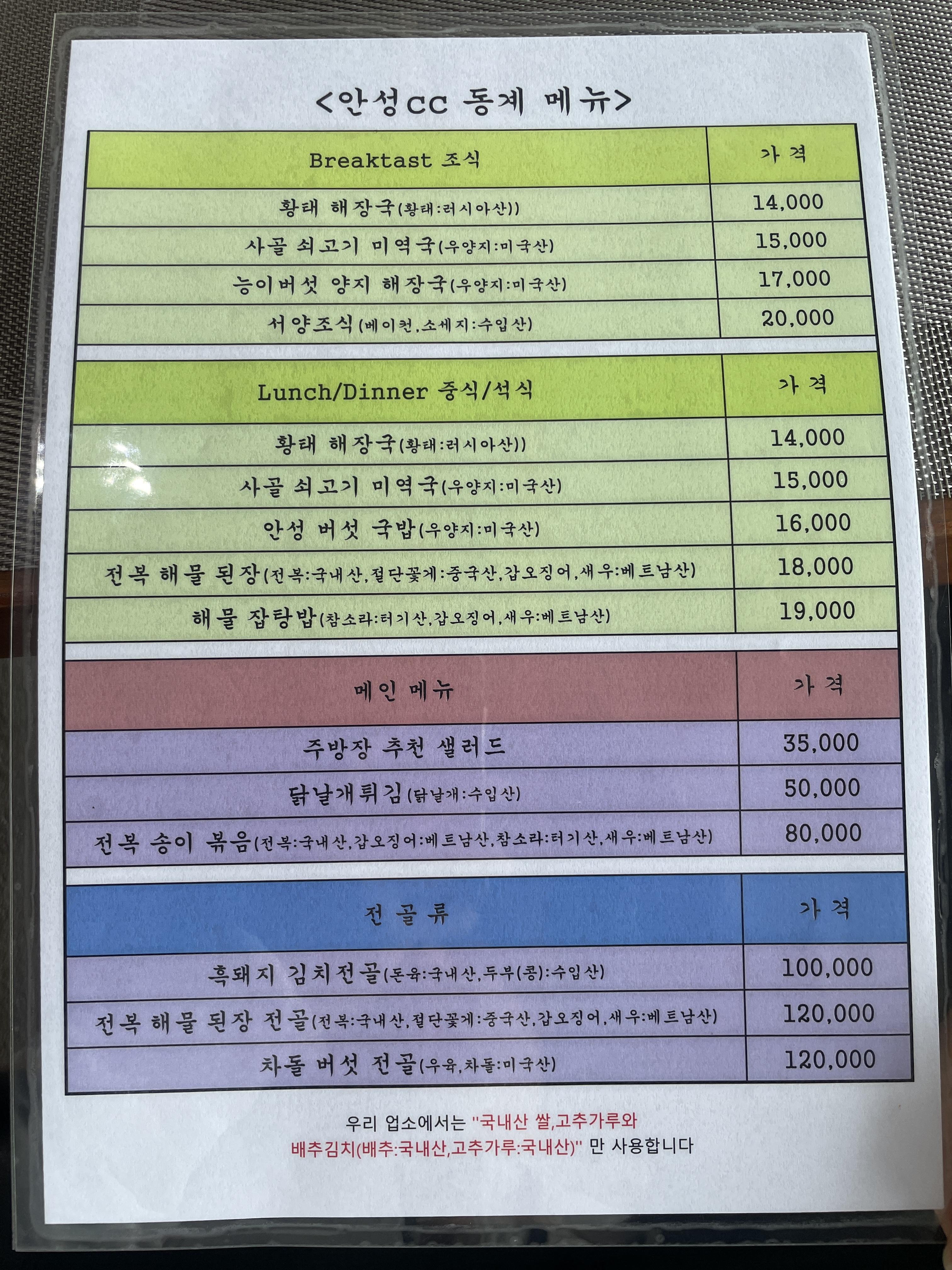 가끔 클럽하우스 식당에서 아침이나 식사하고 라운딩 할 때가 있어요. 주변에 아침 먹을 마땅한 데가 없어서? 아니면 그냥 일찍 가서 여유 부리고 싶을 때? 맛은 보통이에요. 배 채우려고 먹었어요.